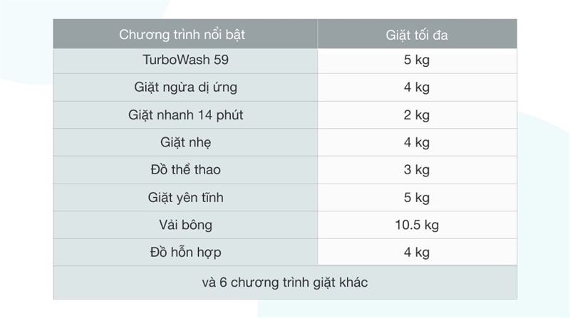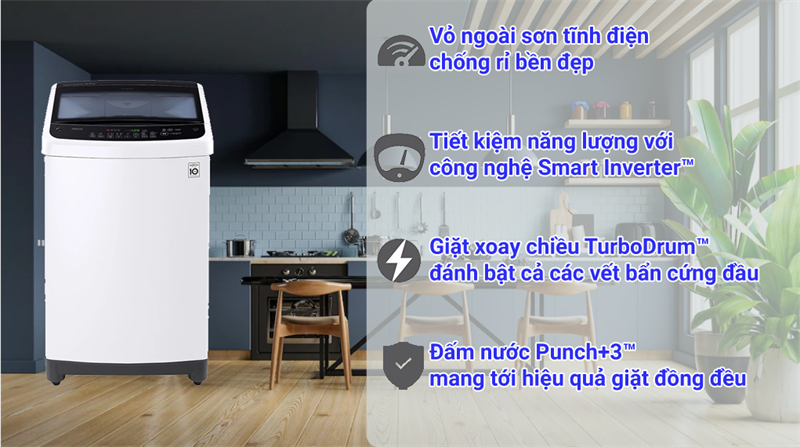Tiện ích:Công nghệ Smart Inverter. Khóa trẻ em. Vệ sinh lồng giặt. Hẹn giờ giặt. Chức năng chẩn đoán thông minh