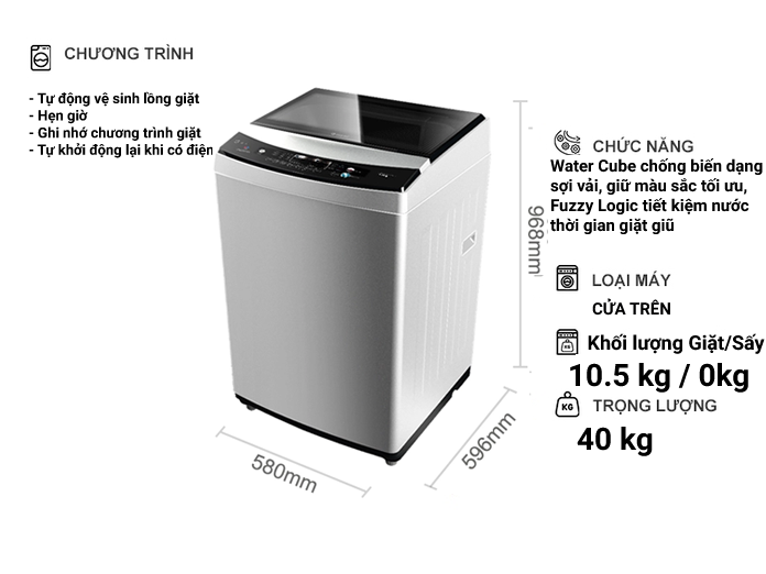 Máy giặt lồng đứng Coex 10.5 kg TW-10CW1407IGB - THÁI LAN