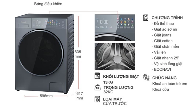 • Loại máy giặt:Cửa trước• Lồng giặt:Lồng ngang