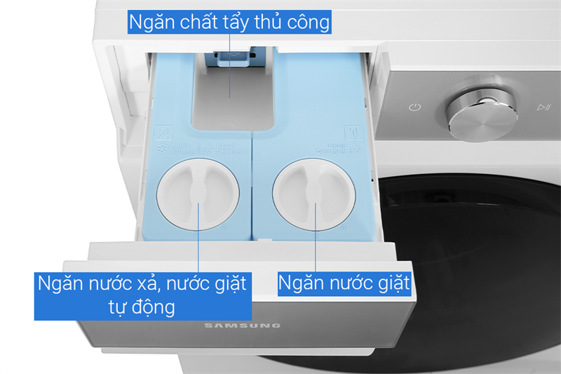 · Tiện ích: | Điều khiển máy giặt bằng smartphone qua ứng dụng SmartThings Tự động vệ sinh lồng giặt Drum Clean+ Tự động phân bổ nước giặt Khóa trẻ em Hẹn giờ giặt Giặt nhanh 15 phút Chẩn đoán sự cố thông minh qua ứng dụng điện thoại Smart Check Cài đặt ngôn ngữ hiển thị bằng Tiếng Anh hoặc Tiếng Việt |