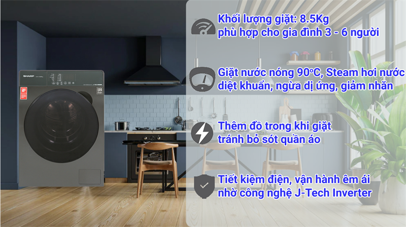 Khối lượng giặt 8.5 kg, phù hợp cho các hộ gia đình trên 7 thành viênVới khối lượng giặt 8.5 kg, máy giặt Sharp là sự lựa chọn phù hợp với các hội gia đình trên 7 thành viên. Trong trường hợp, gia đình bạn ít người hơn nhưng có nhu cầu giặt giũ cao thì sản phẩm này vẫn là sự lựa chọn hoàn hảo.