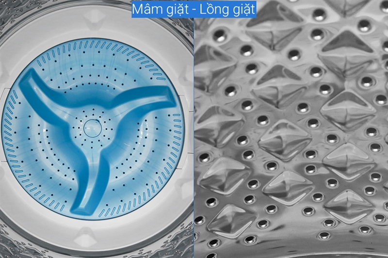 Thiết kế thành lồng giặt độc đáo cùng nhiều gờ nổi, nâng cao hiệu quả ma sát và làm sạch mà không làm hư sợi vải.