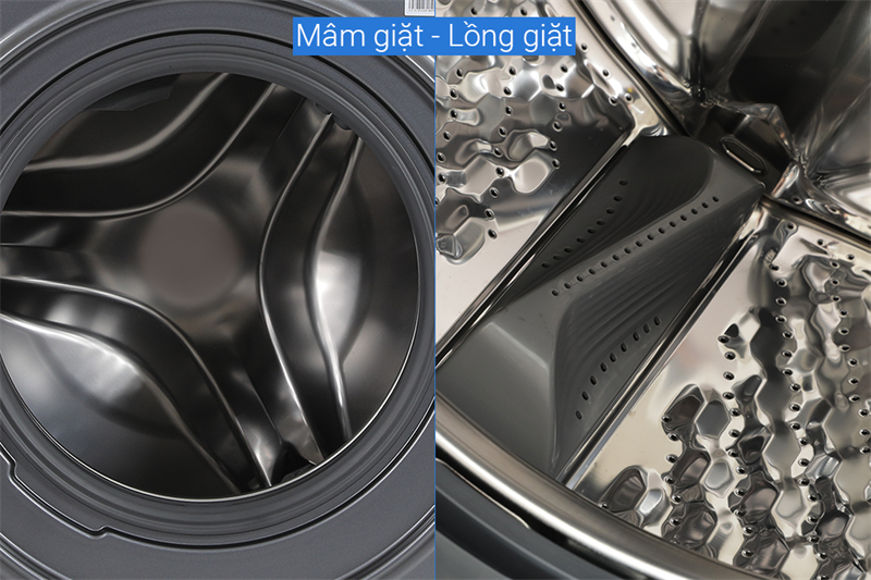 - Lồng giặt chất liệu thép không gỉ hạn chế rỉ sét, bám bẩn, làm sạch thuận tiện. Với chiều rộng 535 mm, lồng giặt cho phép bạn giặt được nhiều quần áo, giặt sạch và giảm nhăn hiệu quả, giặt sạch hơn, giảm nhăn trên đồ giặt. Tương thích với lồng giặt 535mm là cửa máy kích cỡ 365 mm giúp bạn đặt đồ vào hay lấy đồ ra gọn gàng, nhanh chóng hơn.