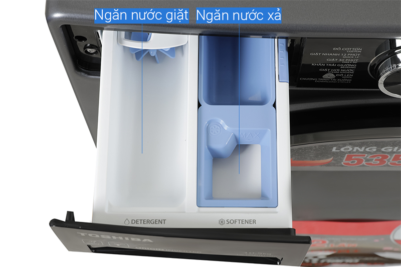 - Mẫu máy giặt Toshiba này có khối lượng giặt tối đa 10.5 kg, lựa chọn lý tưởng cho gia đình trên 7 người hoặc gia đình có ít thành viên hơn nhưng nhà có trẻ nhỏ, nhu cầu giặt đồ cao.