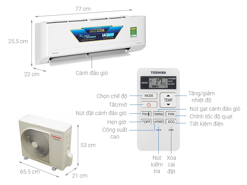 Cơ chế thổi gióMáy lạnh Toshiba Inverter sử dụng cơ chế điều khiển lên xuống tự động, trái phải tùy chỉnh tay nên khi hoạt động sẽ đưa hơi lạnh lan tỏa nhanh khắp phòng.