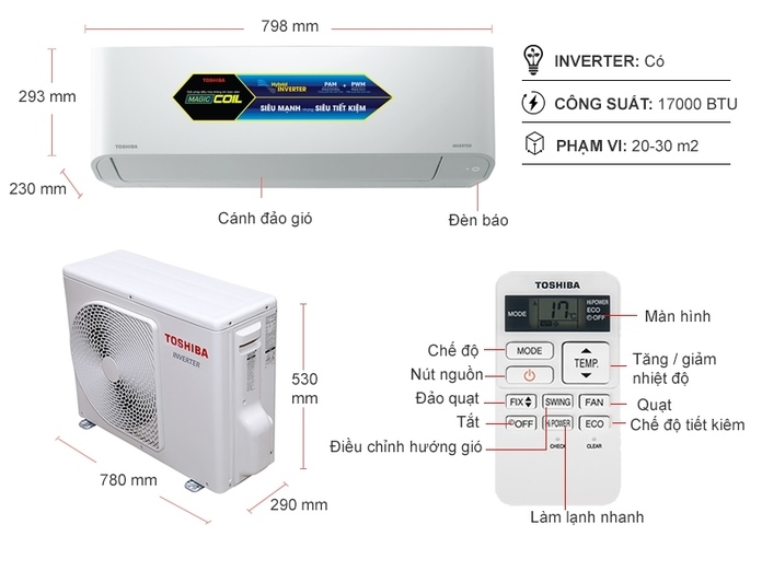 Thông số kỹ thuật Máy lạnh Toshiba Inverter 1.5 HP RAS-H13C3KCVG-V