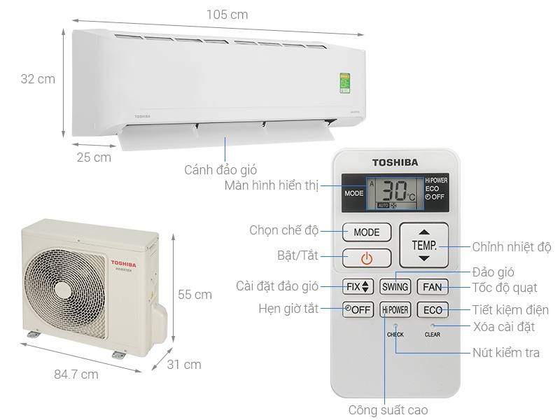 Máy lạnh Toshiba Inverter 2.5 HP RAS-H24S4KCV2G-V 2024 - THÁI LAN