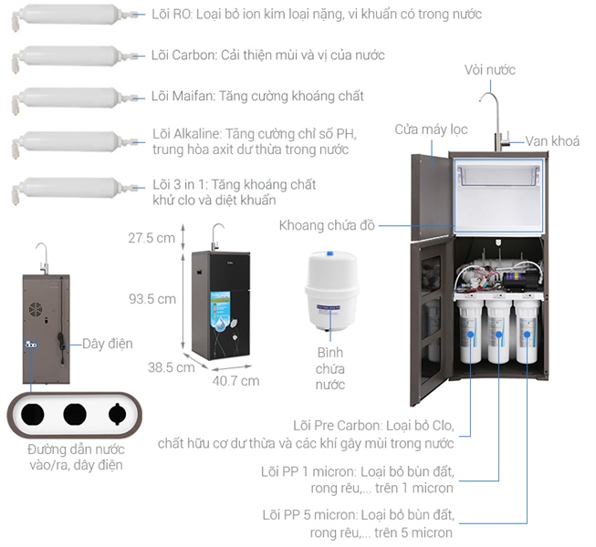 | Lõi 5: Carbon (Sx Trung Quốc) Lõi 6: Maifan (Sx Trung Quốc) Lõi 7: Alkaline (Sx Trung Quốc) Lõi 8: 3 in 1 (Sx Trung Quốc)