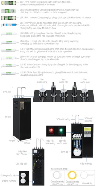 Máy lọc nước RO nóng nguội lạnh Hydrogen Kangaroo KG11A3 11 lõi 2024 - Việt Nam