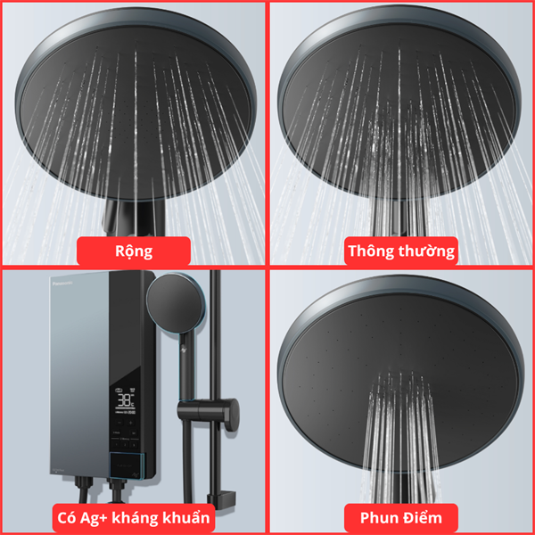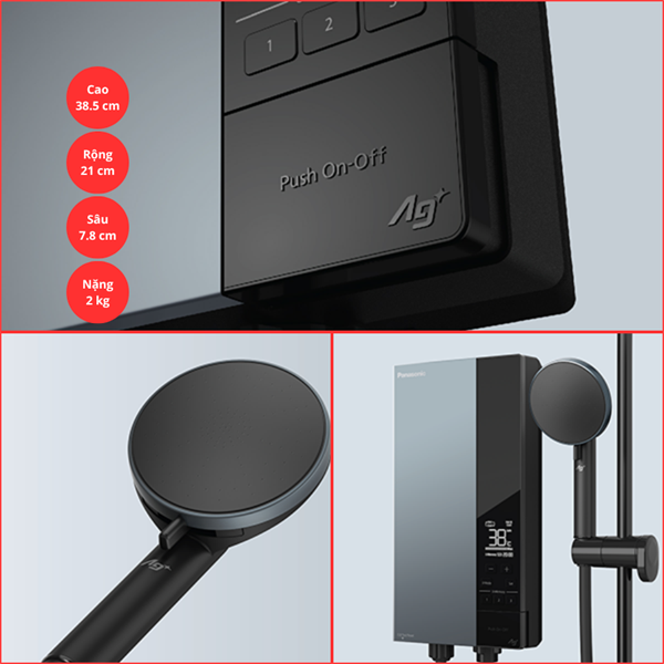 - Vòi sen, tay nắm kháng khuẩn: Vòi sen và tay nắm được làm từ vật liệu tinh thể bạc Ag+, có khả năng kháng khuẩn nhằm giảm bớt các tác nhân gây hại cho sức khỏe người dùng bám trên các bộ phận này. Ngoài ra, chất liệu nhựa kháng khuẩn tinh thể Ag+ cũng giúp cho vòi sen giữ được độ sáng bóng và tính thẩm mỹ cao sau khoảng thời gian dài sử dụng.