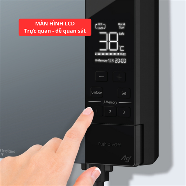 - Bảng điều khiển được thiết kế dạng phím nhấn, có kèm màn hình LCD hiển thị sắc nét với các thông số về nhiệt độ, thời gian và chế độ mà máy nước nóng đang hoạt động.