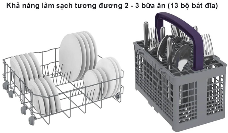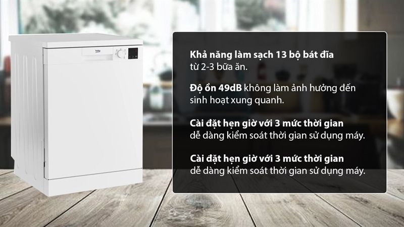 Máy rửa chén Beko DVN05320W có khả năng làm sạch được 13 bộ bát đĩa