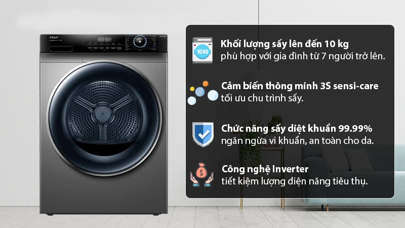 Máy sấy bơm nhiệt Aqua 10 kg AQH-H1000H PS 2022