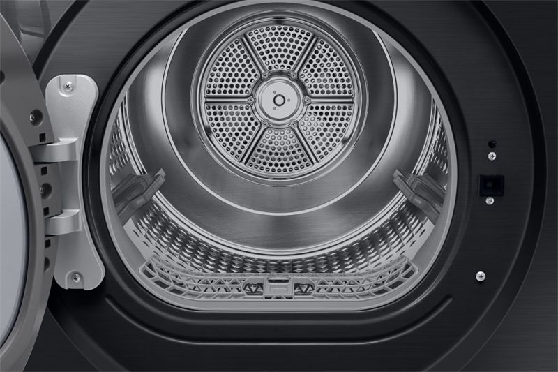 - Lồng sấy làm bằng thép không gỉ bóng bẩy, chống rỉ sét, mài mòn, hạn chế bụi bẩn, mảng bám, giúp nâng cao tuổi thọ cho thiết bị. Ngoài ra, với kích cỡ lồng sấy lớn, bạn có thể tăng lượng quần áo cho vào máy, sấy các đồ dùng size to như chăn, màn cửa thuận tiện hơn.