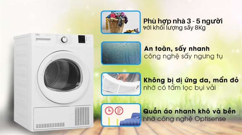 Máy sấy ngưng tụ Beko 8 kg DU8133GA0W - THỔ NHĨ KỲ (99.6T5))