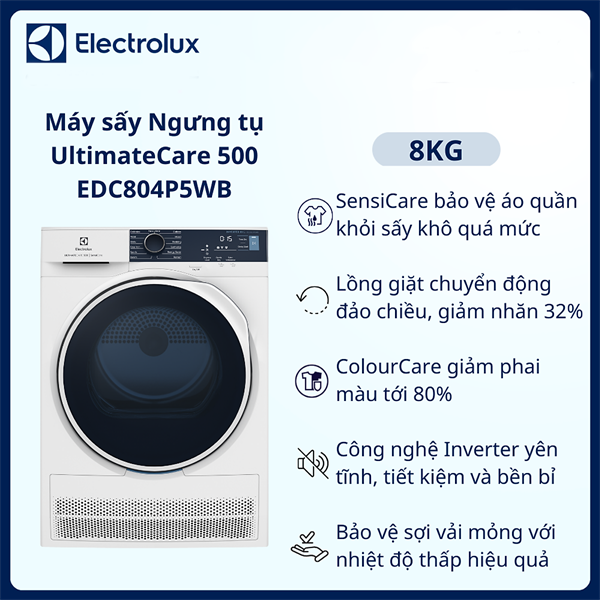 Máy sấy ngưng tụ Electrolux UltimateCare 8 kg EDC804P5WB 2022 - BA LAN