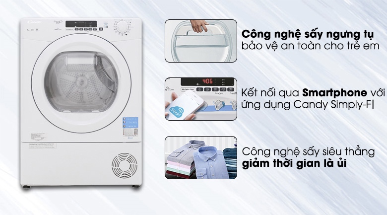 Máy sấy ngưng tụ Candy 9 Kg GVS C9DE-S SX: Thổ Nhĩ Kỳ