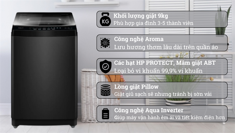 Máy giặt Aqua Inverter 9 kg AWM9-B316K(B) 2025 - VIỆT NAM