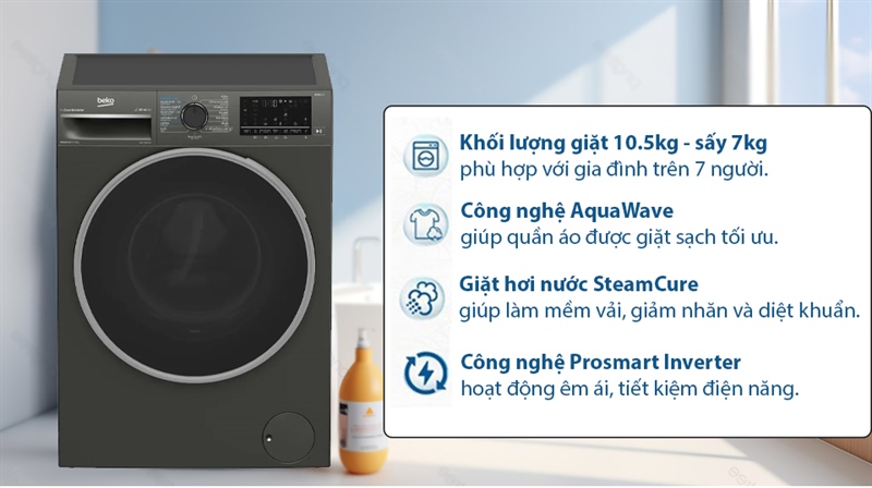 Máy giặt sấy Beko Inverter 10.5 Kg B3DFT5105472M 2023 (Sấy 7kg) - THỔ NHĨ KỲ