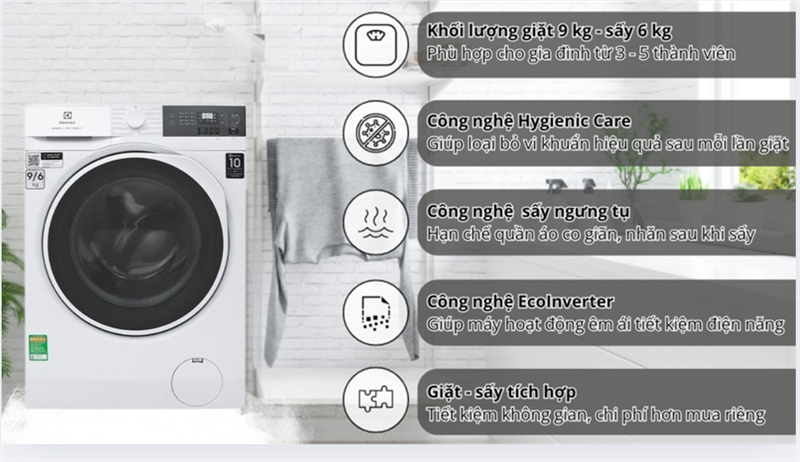Máy giặt sấy Electrolux UltimateCare 300 Inverter giặt 9 kg - sấy 6 kg EWW9024P3WC 2024 - Thái Lan