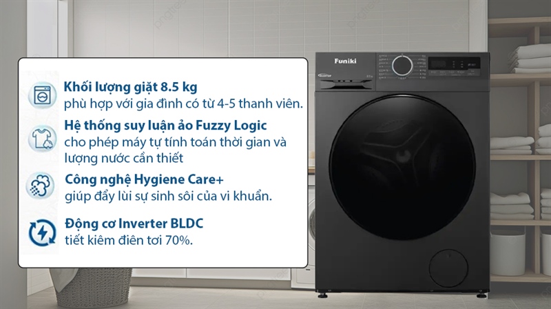 Máy giặt Funiki inverter 8.5 kg HWM F885ADG -THÁI LAN