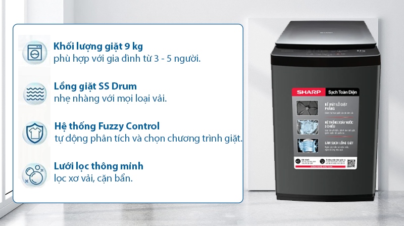 Máy Giặt Sharp 9 Kg ES-Y90HV-S (N.4T2)