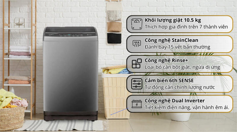 Máy giặt Whirlpool Inverter 10.5 kg VWVD10502FG