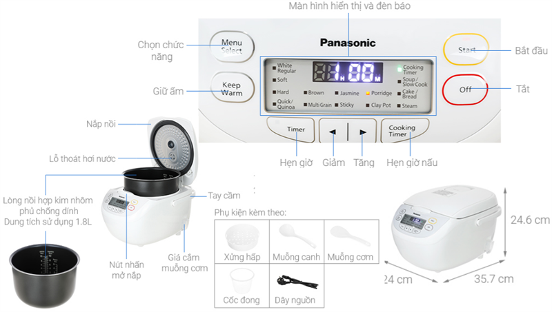 Dung tích 1.8 lít phục vụ tốt khẩu phần ăn cho gia đình 4 - 6 người