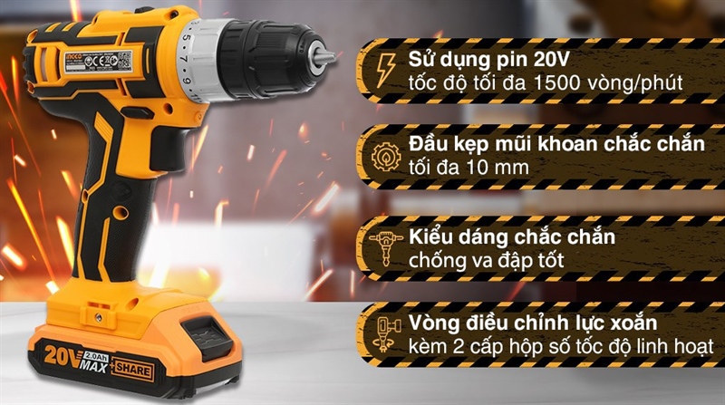 Máy khoan vặn vít pin Ingco CDLI20024 20V (N.900)