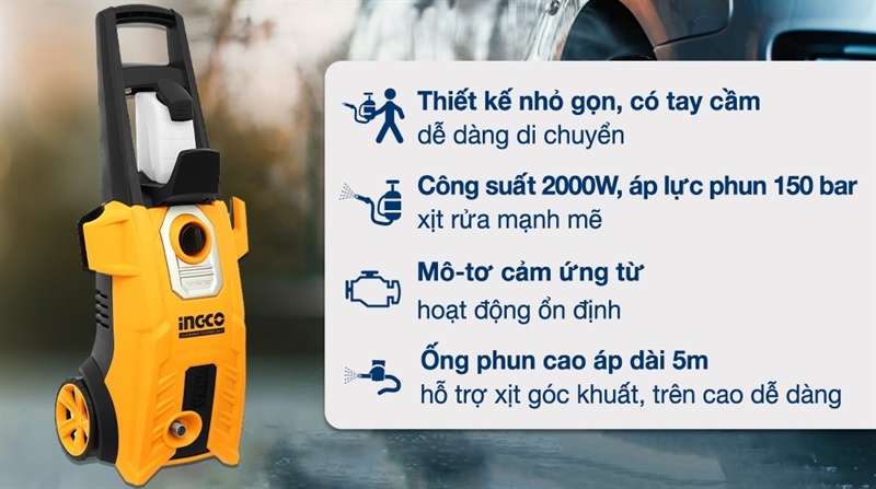 Máy phun xịt rửa áp lực cao Ingco HPWR20008 2000W