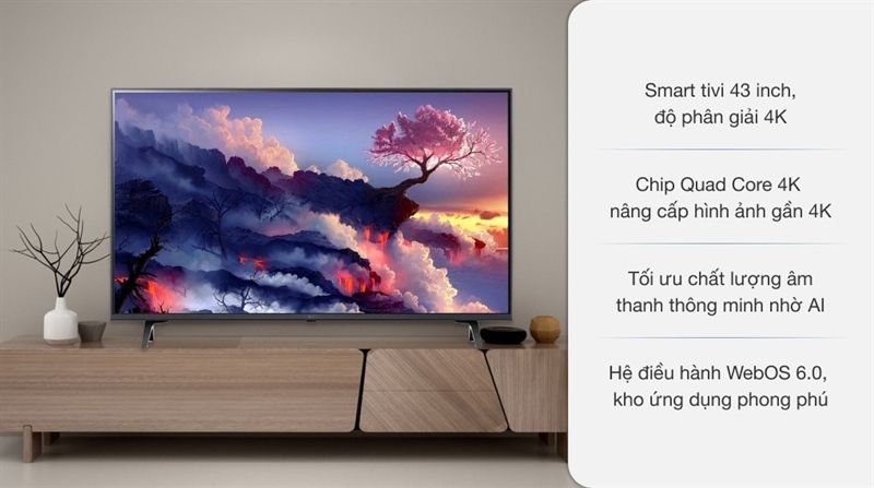 Nhìn chung, TV LED LG 43 inch này là một sản phẩm đáng mua đối với những ai có các nhu cầu giải trí cơ bản. Thêm vào đó với thiết kế hiện đại mà TV LG sở hữu sẽ mang lại sự sang trọng cho căn phòng của bạn.