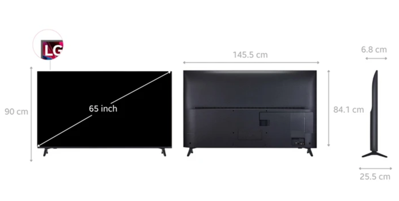 • Kích thước không chân, treo tường: Ngang 145.5 cm - Cao 84.1 cm - Dày 6.79 cm