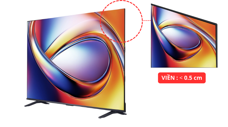 Thiết kế này không chỉ tối ưu thẩm mỹ mà còn giúp người dùng tập trung vào nội dung hiển thị, không bị phân tâm bởi các chi tiết rườm rà. Với độ phân giải 4K và tấm nền VA LCD, tivi mang đến hình ảnh sắc nét, màu sắc sống động, phù hợp cho cả không gian rộng rãi.