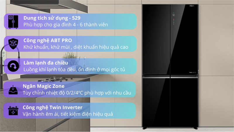 Tủ lạnh Aqua Inverter 455 lít AQR-TA518FA(GL)U1 2024 - VIỆT NAM