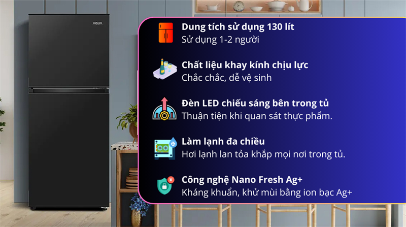 Tủ lạnh Aqua 130 lít AQR-T160FA(BS) 2024 - Việt Nam
