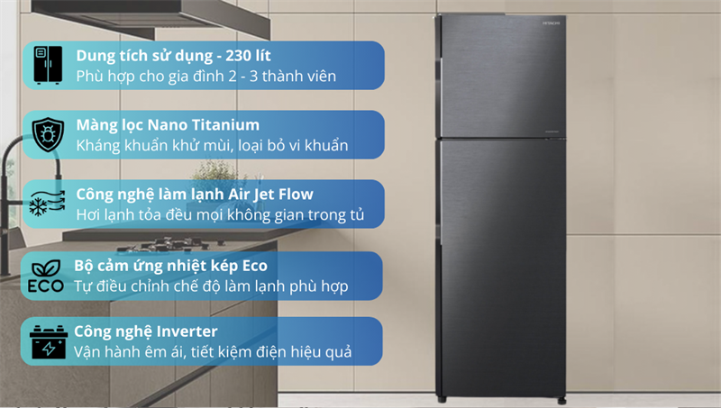 Tủ lạnh Hitachi Inverter 240 lít HRTN5255MFUVN 2024 - THÁI LAN