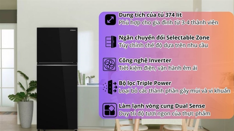 Tủ Lạnh Hitachi Inverter 374 Lít HRTN6408SGBKVN - THÁI LAN