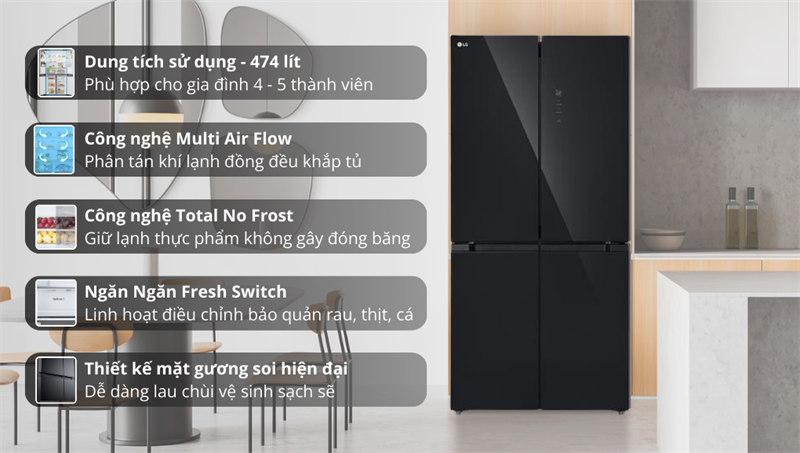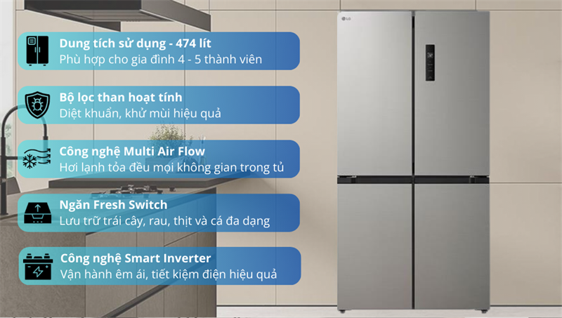 Tủ lạnh LG Inverter 474 lít Multi Door LFB47BLG 2024