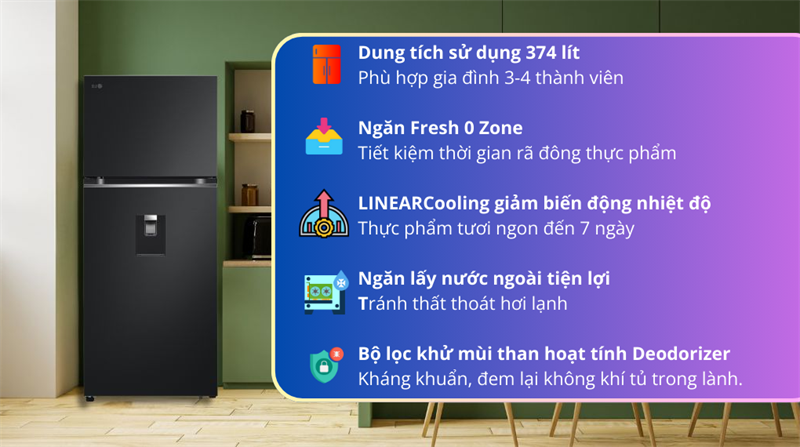 Tủ lạnh LG Inverter 335 lít LBB33BLGA 2024 - Indonesia