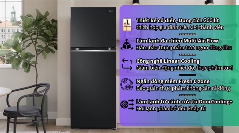 Tủ lạnh LG Inverter 266 lít LTB26BLM 2025 - INDONESIA