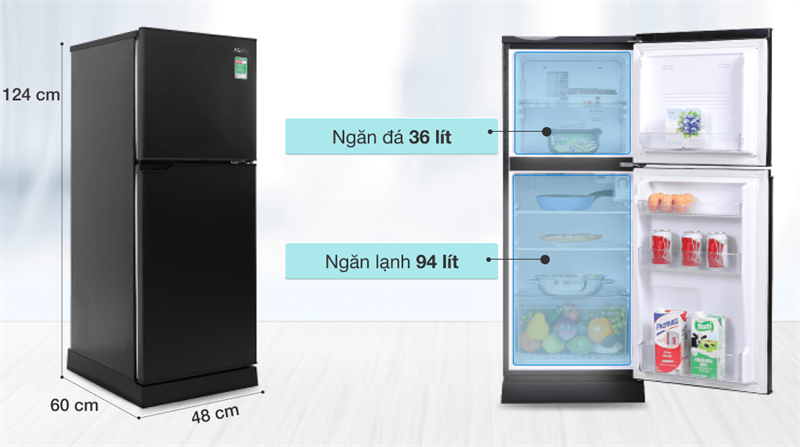 · Kích thước tủ lạnh: | Cao 124 cm - Rộng 48 cm - Sâu 60 cm - Nặng 33 kg |