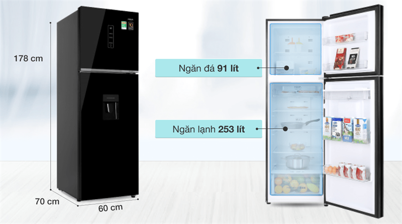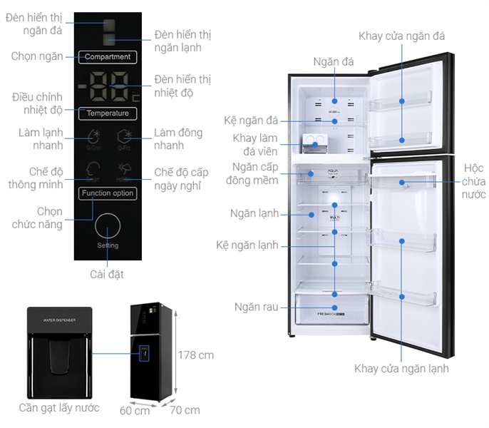 · Kích thước tủ lạnh: | Cao 178 cm - Rộng 60 cm - Sâu 70 cm - Nặng 66 kg |