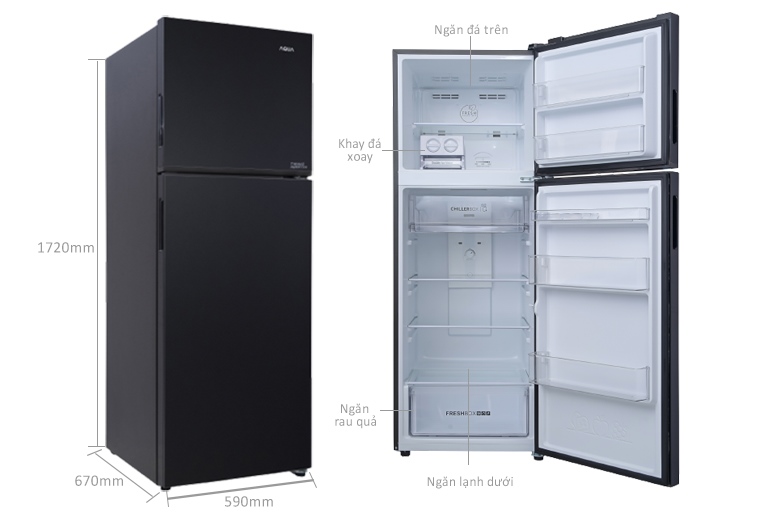 - Với gam màu đen sang trọng, mẫu tủ lạnh Aqua này có thể phối hợp hài hòa với nhiều nội thất khác bên trong không gian bếp.