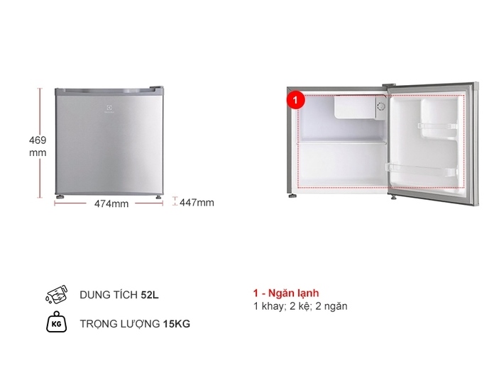 Thông số kỹ thuật TỦ LẠNH ELECTROLUX 52 LÍT EUM0500SB