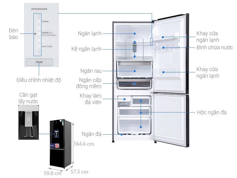Thông số kỹ thuật Tủ lạnh Electrolux Inverter 308 lít EBB3442K-H 2021 - Thái Lan