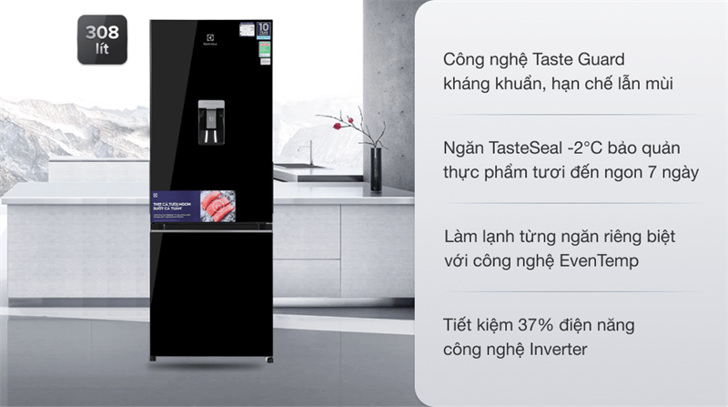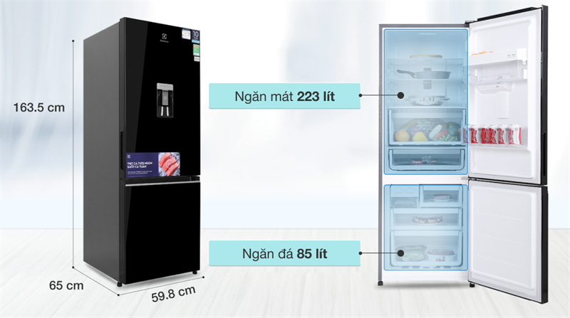 Electrolux Inverter EBB3442K-H 2021 - Thái Lan sở hữu dung tích 308 lít với ngăn lạnh 223 lít và ngăn đá 85 lít, thích hợp việc bảo quản thực phẩm cho những gia đình đông thành viên từ 3 - 4 người, hoặc những gia đình ít hơn nhưng lại có nhu cầu lưu trữ nhiều thực phẩm để sử dụng hoặc kinh doanh.