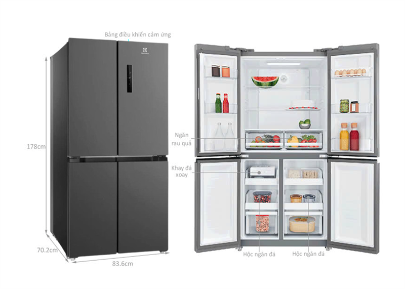 Tủ Lạnh Electrolux Inverter 496 Lít EQE4900A-A 2024 sở hữu thiết kế 4 cửa hiện đại, sang trọng với tông màu lịch lãm, phù hợp với mọi không gian bếp. Chất liệu cửa tủ lạnh từ thép không có khả năng chống gỉ sét, ăn mòn và va đập tốt, giúp cửa tủ lạnh giữ được vẻ đẹp như mới trong thời gian dài.