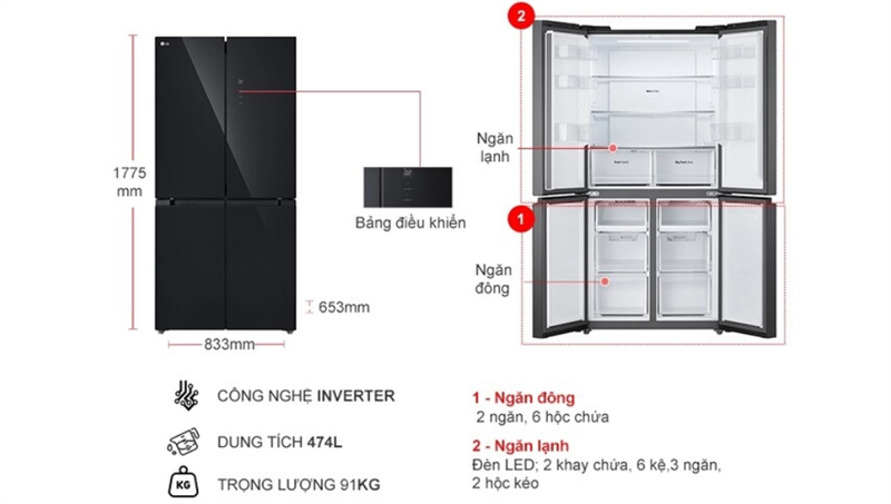 Tủ lạnh LG Inverter 474 lít Multi Door LFB47BLG 2024