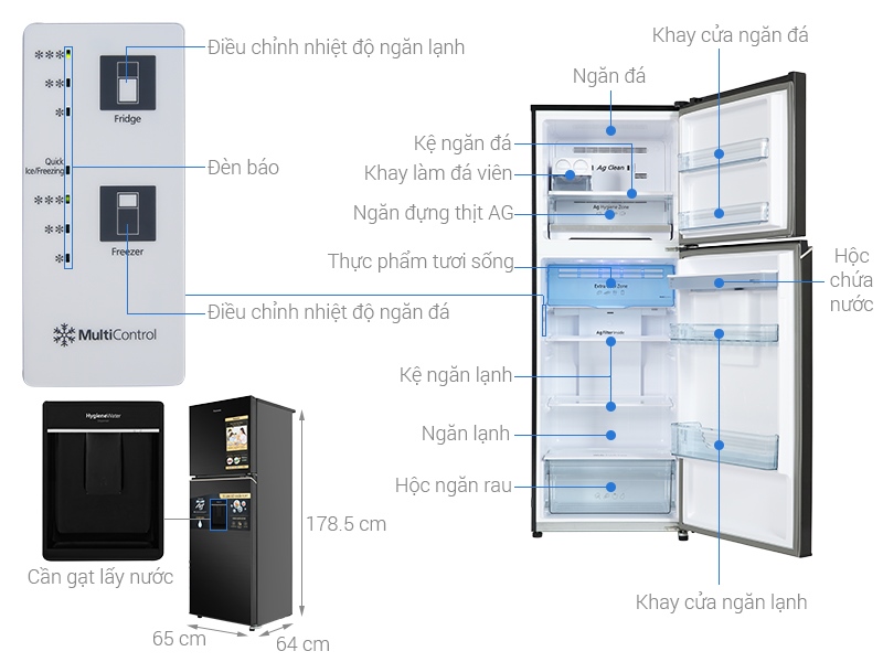- Multi Control với cơ chế hỗ trợ hệ thống cảm biến đa năng giúp kiểm soát nhiệt độ chuẩn xác cho mỗi ngăn tủ, hạn chế tiêu hao năng lượng trong suốt thời gian tủ lạnh vận hành.