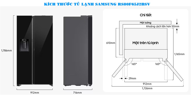 • Kích thước - Khối lượng: Cao 178.6 cm - Ngang 91.2 cm - Sâu 71.6 cm - Nặng 113 kg